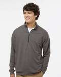 J-America Adult Omega Stretch 1/4 Zip. 8 ounce 51% Rayon, 43% Polyester, 6% Elastine stretch & sueded triblend terry. 4-way stretch fabric with striped loop back yarns. Set-on sleeves. Self fabric collar, waist, & cuffs.